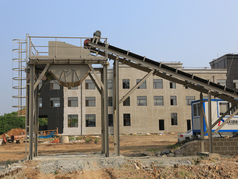 采用成品料平皮帶機將攪拌好的成品料提升輸送到成品料倉內(nèi)。皮帶機帶有重錘清掃器,可將皮帶上黏附的物料刮除。成品料倉為氣動開門,操作方便。